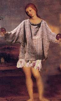 ![]() Renoir's "Young Woman Sewing" wears a choli in nubby peach cottons. |